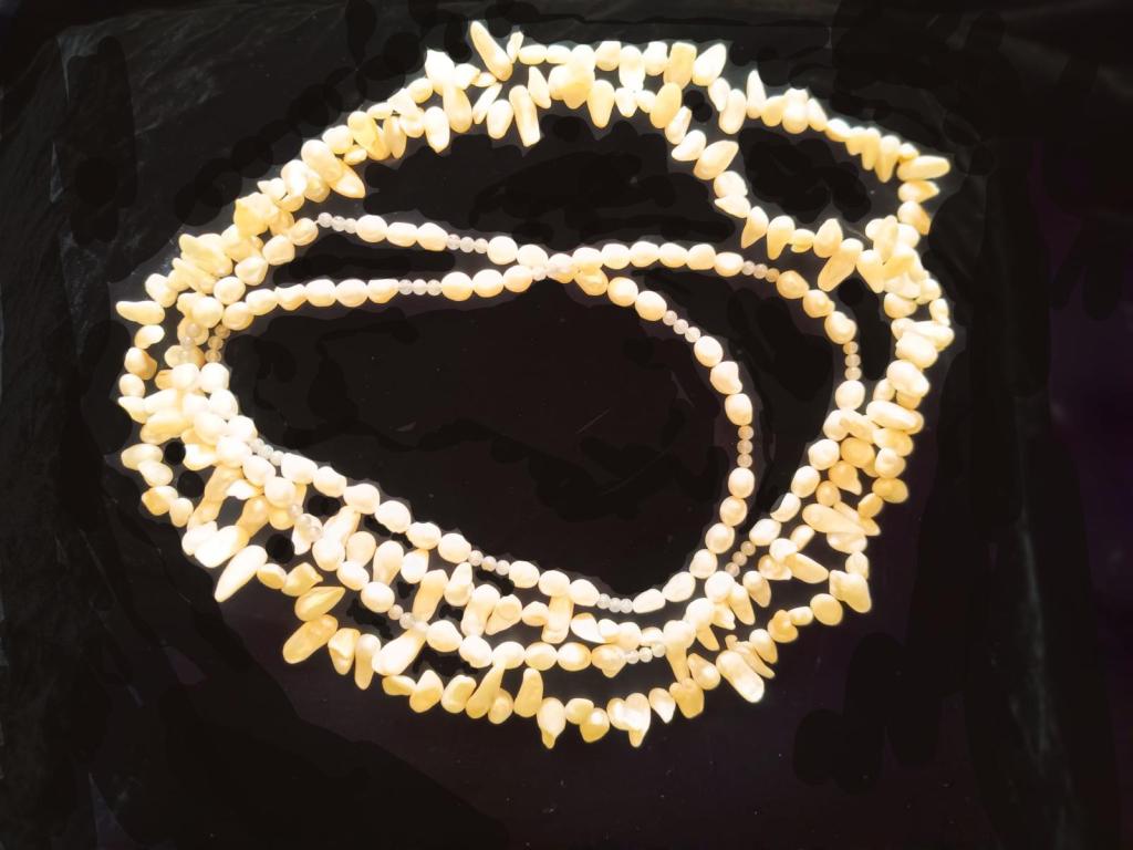 GATE THREE sees the handover of a double stranded necklace. These are pearls, with some small moonstone beads.