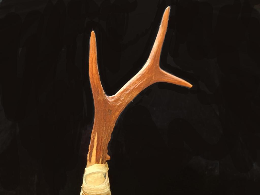 At GATE VI, Inanna hands over her divining rod. This is a deer antler mounted onto a long holly branch. It has been used in the past to rescue bees in summer, when they find themselves trapped behind a window. They hop onto the end quite happily and can be transported to safety outdoors.